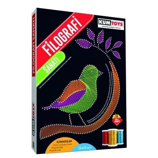 Filografi Sanatı Birbirinden farklı renkli teller ellerinizde hayat buluyorFilografi, ahşap bir zemin üzerine çizili desene çiviler çakıldıktan sonraçivilerin arasından teller geçirilip belli örgü teknikleri kullanılarak çeşitli desenler meydan getirme sanatıdır.Filografi sanatı çocukların ve gençlerin el becerilerini arttırırken onların keyifli vakit geçirmesini sağlar.Kutu İçeriği: Renkli Filografi TelleriFilografi Çivileri1 Adet Ahşap zemin1 Adet Çivi Tutma AparatıYaş: 8 Yaş ve Üzeri