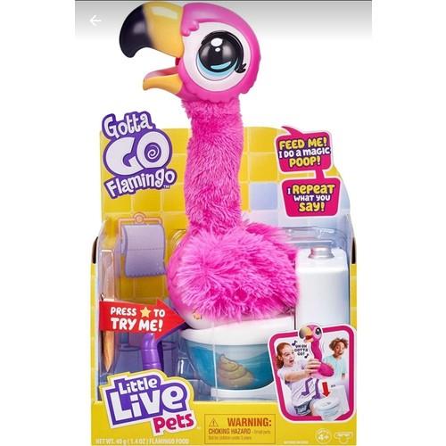 • Go go, en komik ve en havalı flamingo! Boynunu sallayıp söylediklerini tekrarlarken çocukları çok güldürecek! Onubesledikten sonra, meşhur gotta go şarkısını söylediğinde tuvalet zamanı geliyor. Üstelik tekrar tekrar kullanılabilirflamingo maması da var!