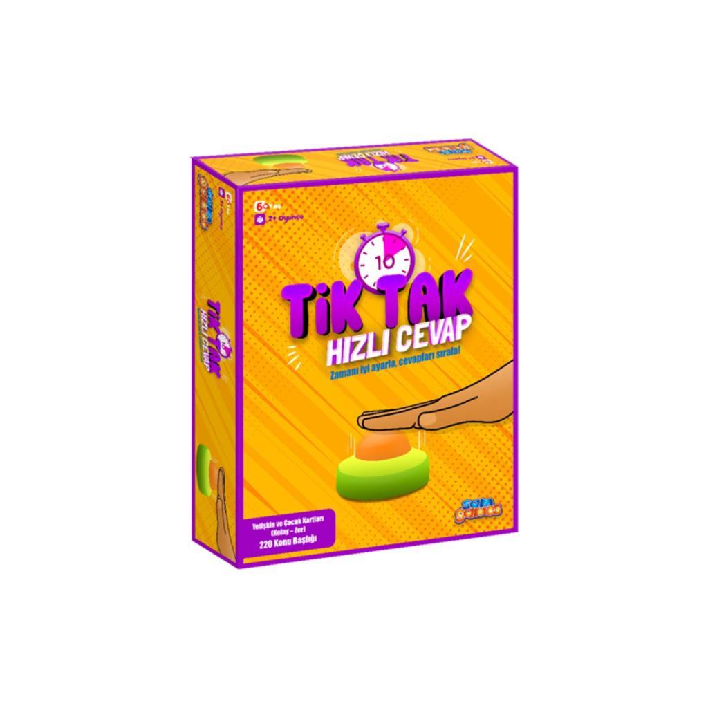 Tik Tak Hızlı Cevap Ürün ÖzellikleriZamanı iyi ayarla cevapları sırala Çekilen karttaki konuyla ilgili 5 cevabı 10 saniye içerisinde söyle puanları kazan 10 saniye içerisinde 5 dans türü söyleyebilir misin Kolay gözüküyor değil mi Belki şu an aklından dans türleri geçiyor Peki ya zamana ve rakiplere karşı yarışıyor olsaydın Tik Tak Tik Tak Tik Tak Bu elektronik zamanlayıcının sesi sadece 10 saniyen varÇekilen karttaki konuyla ilgili 5 cevabı zamanlayıcı sona ermeden söyleyebilirsen puanları kazanır rakiplerinin önüne geçersin cevapları bulamadan elektronik zamanlayıcının bitiş sesini duyarsan bir sonraki el daha iyi konsantre olmalısın Kutu İçerisinde Elektronik zamanlayıcı 110 konu kartı 220 konu kart kutusu oyun kılavuzu